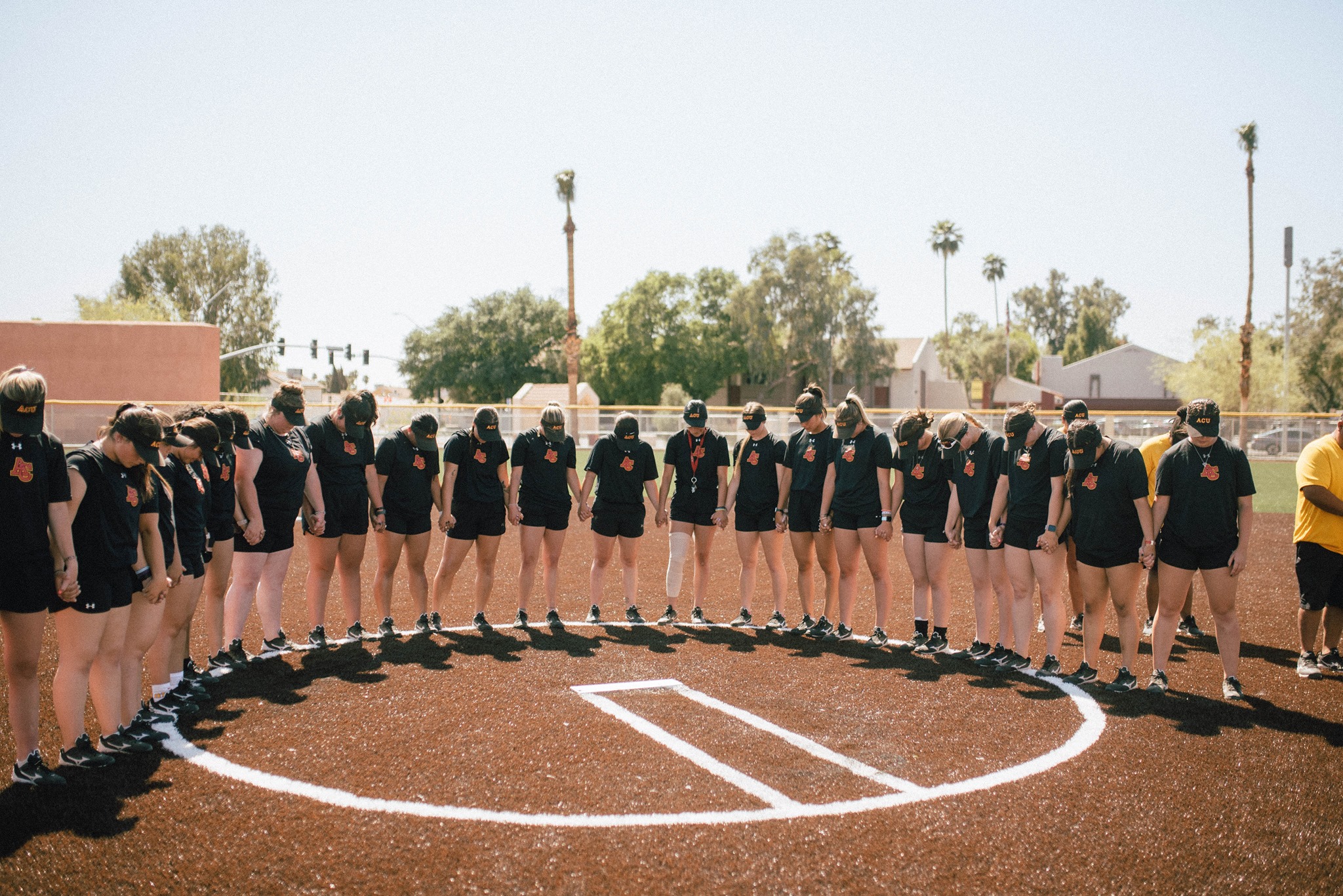 The night prior to the inaugural home softball game, faculty, staff, and students gathered to pray over the brand new field and dedicate it to the Lord. Then on Saturday the Firestorm celebrated their seniors as they hosted Ottawa University Arizona.