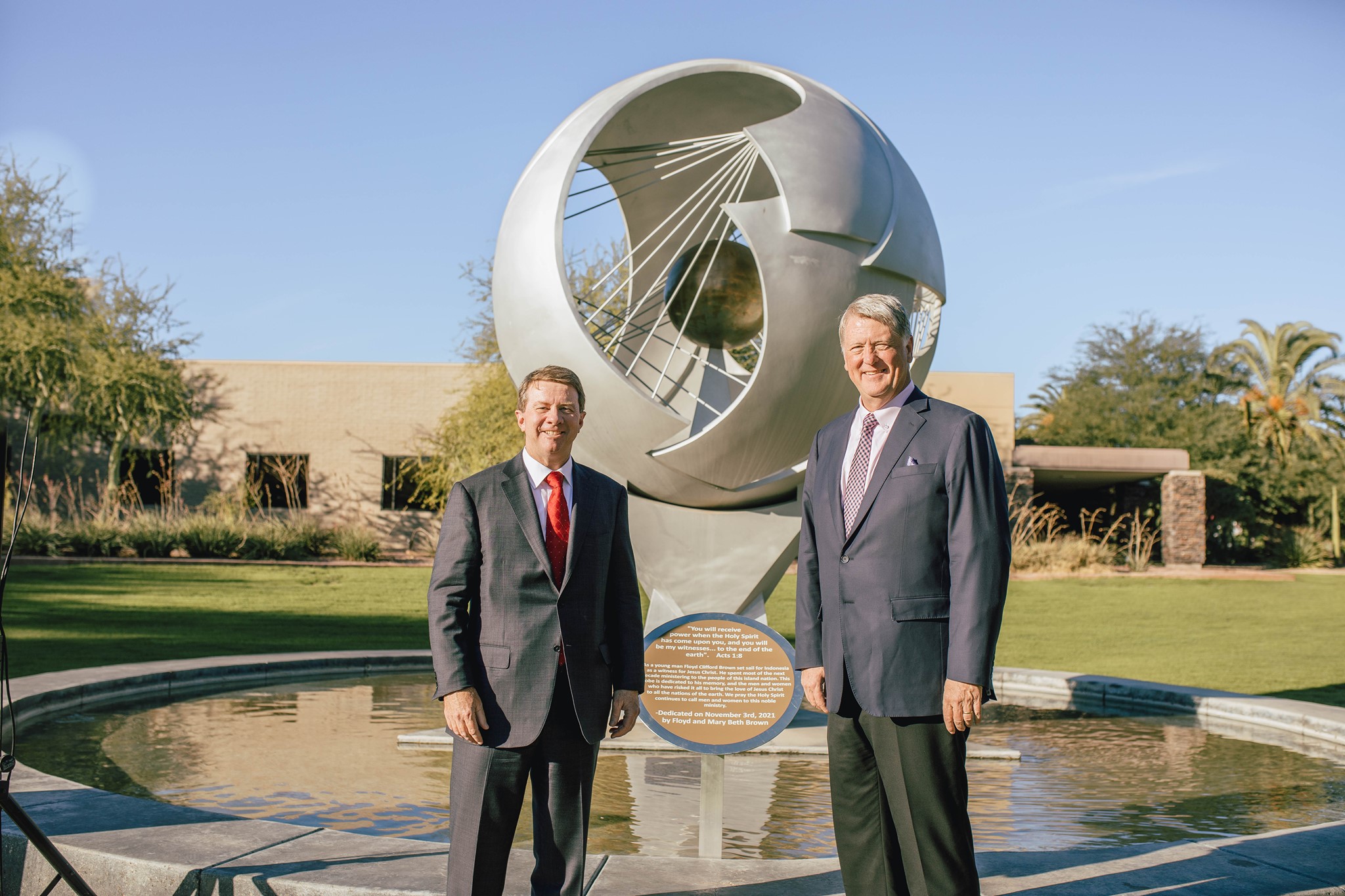 It was an honor for ACU to rededicate the monument in honor of Floyd C. Brown and all the missionaries who are graduates of Southwestern College and Arizona Christian University who have heeded Jesus’ call to “go and make disciples of all nations.” We are eternally grateful to the Brown family for their contributions to the Kingdom of God and to ACU, and look forward to future generations of ACU students being able to see this symbol of the Brown family’s Christian service and generosity.